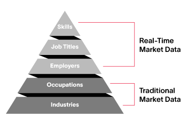 Lastly, the rising tide of interest in skills-based hiring (and corresponding interest in skills-based education) makes it increasingly important to evaluate alignment at the skill level as well. Skills-based analysis has several unique advantages for education providers, chief among them the ability to make a direct, apples-to-apples comparison of what’s taught in courses to what’s sought by employers in the labor market.