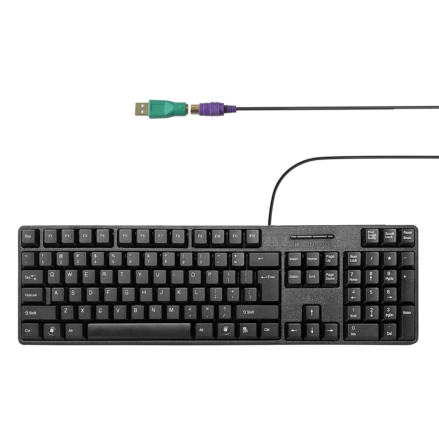 Wired PS2 104 Keys Computer Keyboard with Stands,Waterproof – US Layout Compatible for Windows, PC, Laptop, Black