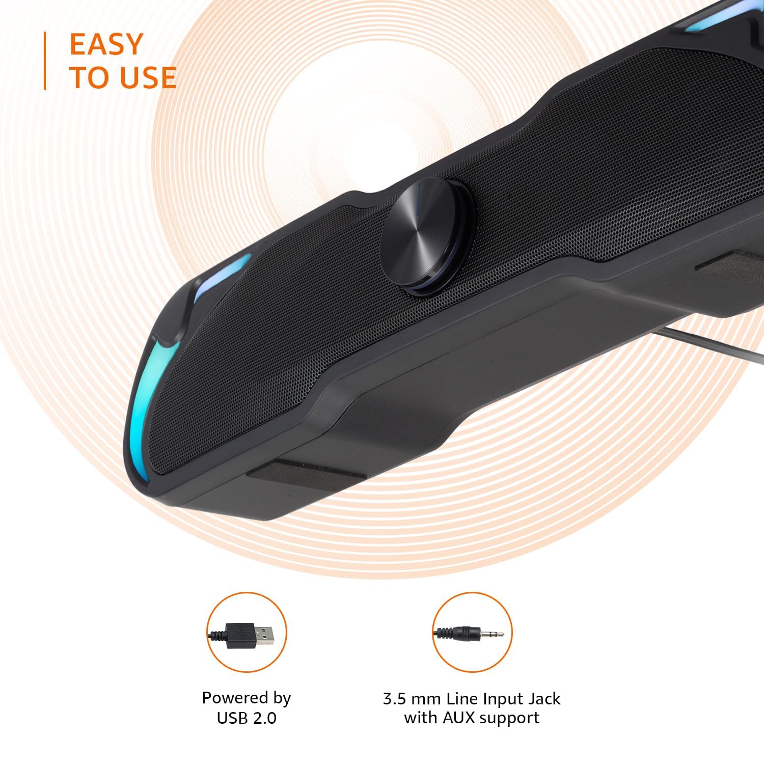 Amazon Basics YM135 USB powered 2.0 modern design wired soundbar speakers best fit for your gaming experience as it comes RGB lights