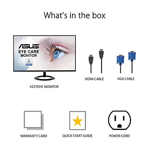 Robust connectivity with HDMI and VGA ports. What’s in the box: VGA cable, HDMI cable, Power cord & adapter, Warranty card, Quick Start Guide