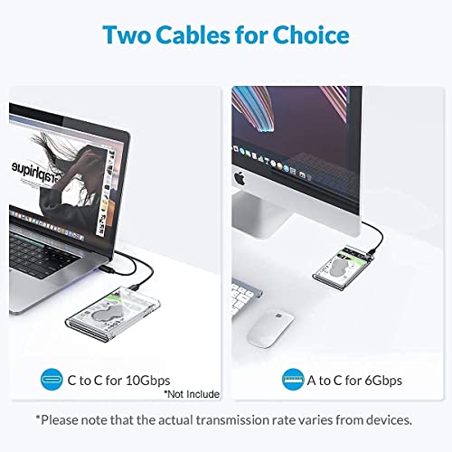 2.5 Inch External Hard Drive Enclosure USB C 3.1 to SATA III 6Gbps UASP Transparent Hard Disk Case 7/9.5mm HDD SSD Tool Free Compatible with PC TV PS4 Xbox