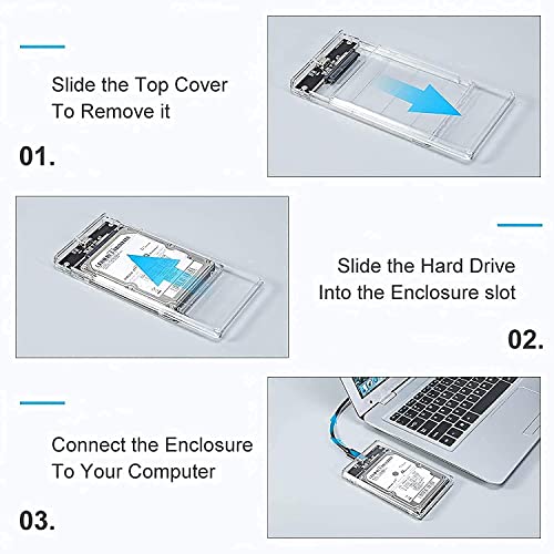 CARE CASE® 2.5 Inch External Hard Drive Enclosure USB C 3.1 to SATA 6Gbps UASP Transparent Hard Disk Case 7/9.5mm HDD SSD Tool Free Compatible with PC TV PS4 Xbox.