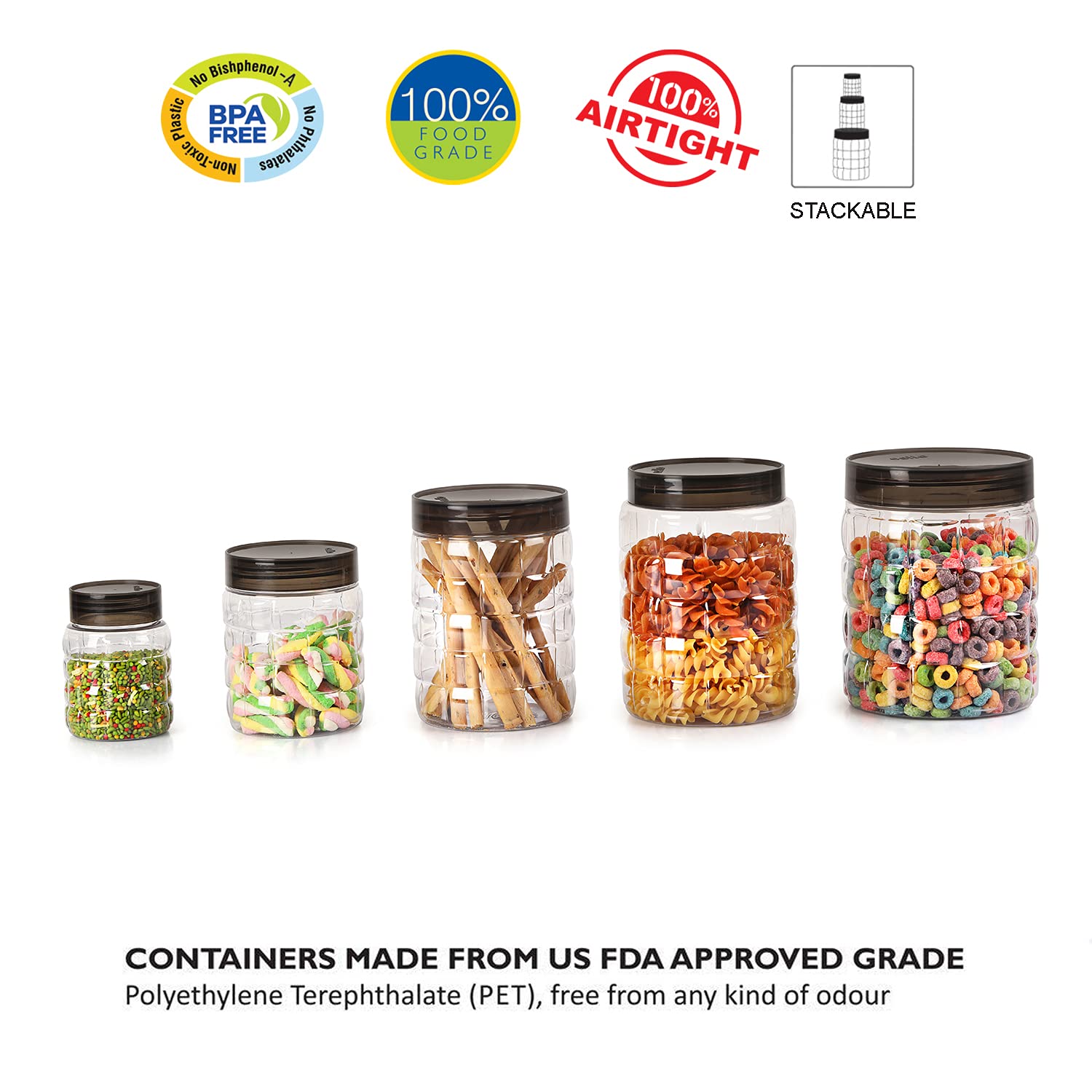 Food-Grade and BPA-Free: The Cello Checkers Canister Set is made from food-grade PET plastic, ensuring the safety of your stored ingredients. These canisters are also free from BPA (Bisphenol A), a harmful chemical often found in plastics.
