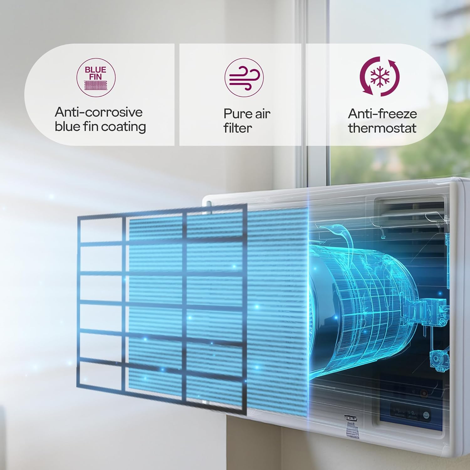 Special Feature: Anti Corrovise Blue Fin: A special anti-corrosive Blue Fin coating on the evaporator and the condenser coils protects from rust and corrosion