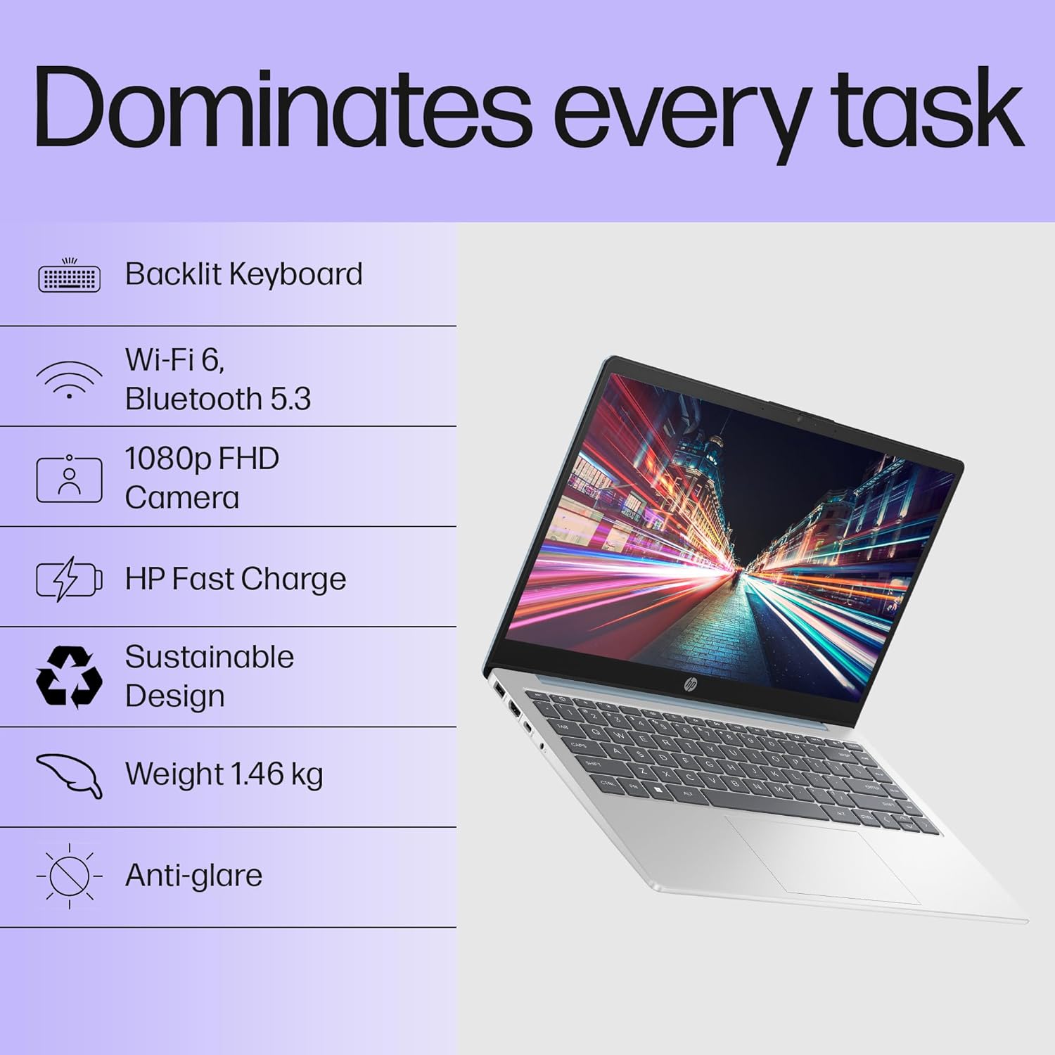 ?Why HP?Experience the unparalleled advantages of choosing HP, the most preferred and trusted PC brand by Indians, empowering you with cutting-edge technology and steadfast dependability.;?Sustainably made?Choose an environmentally conscious laptop with recycled plastics, EPEAT Silver registration, and ENERGY STAR certification.
