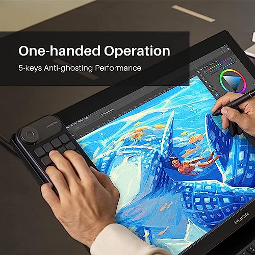 Ergonomic Design: Huion Keydial mini can be placed on the side of your display to save your workspace when working due to the compact body. The scissor-switch keys are closer to the keyboard itself, minimizing the key travel and providing a comfortable and premium typing experience. 115g in weight it is easy to carry. It is also user-friendly for both right-handed and left-handed.