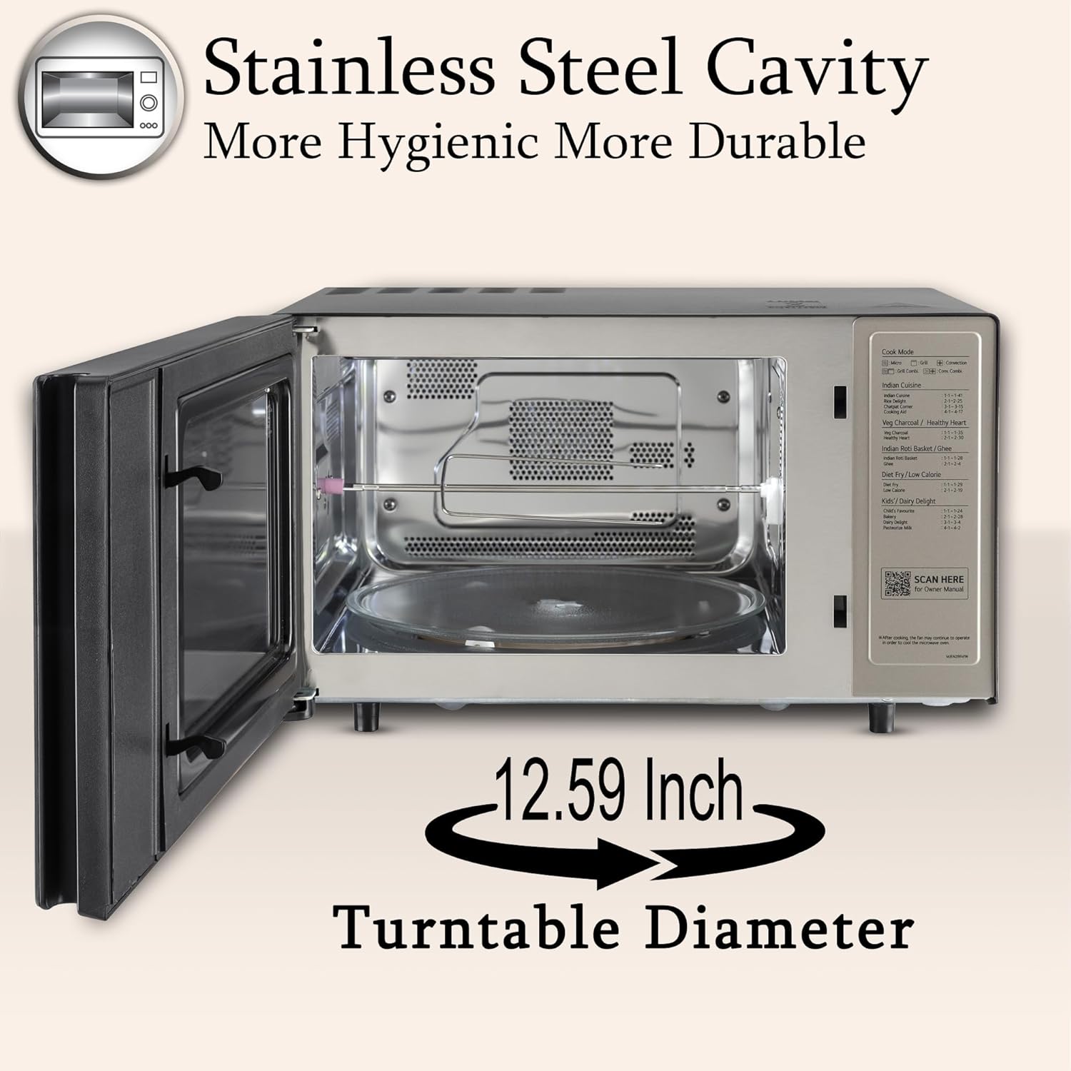 Charcoal Convection: For baking along with grilling, reheating, defrosting and cooking (Maximum temperature) | Maintains the natural flavours and make your dish crunchy outside and juicy inside