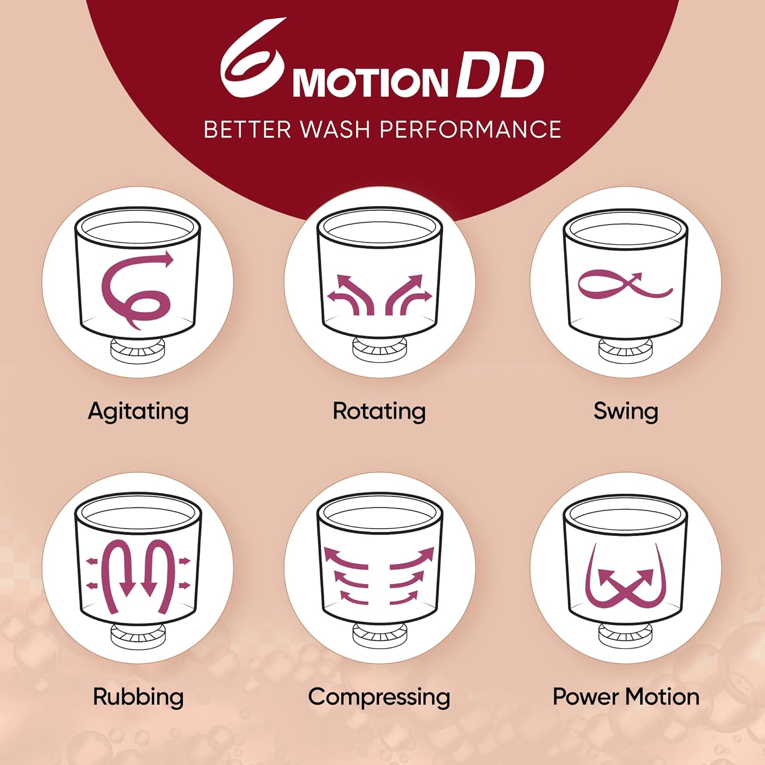 Key Performance Features: AI -Intelligent Care with Optimized washing and More Fabric Protection | With In-Built Heater Steam away Stains and Allergens | 6 Motion Direct Drive – Better Wash Performance, Cleaner Cloths | Inverter Direct drive Motor – Less Vibration, Less Noise, More Durability | Reload Function | Intensive stain removal | Silent operation | Bigger Capacity with Smooth Operation