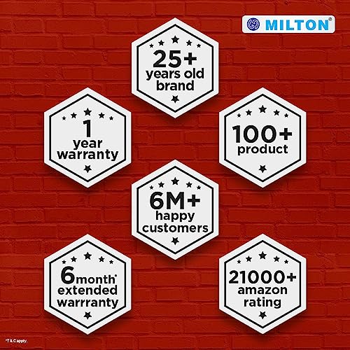 ✅ 12+6 MONTHS WARRANTY : Milton Products Come With A Standard 1 Year Warranty. T&C Apply. Extended 6 Months Warranty Can Be Availed By Registering Your Purchase On Call (Refer Warranty Card For Details)