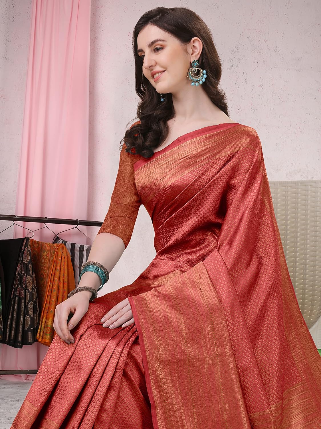 Beautifully designed Indian Traditional ethnic festive wear sarees made of high-quality fabric Banarasi Silk having elegant ethnic motif paisley zari woven work banarasi saree with copper zari border. Mirchi Fashion brings you a nice addition to the wardrobe of every fashionable female, who wants to look glamorous and distinct.