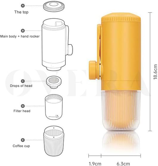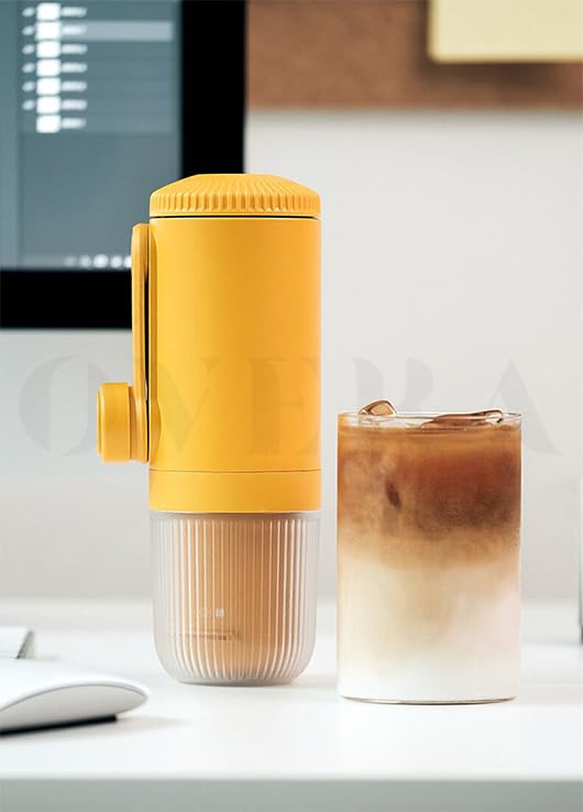 Description Portable Coffee Machine for Car & Home, Expresso Coffee Maker Fit Nexpresso Dolce Pod Capsule Coffee Powder Specification: Product name: Portable coffee machine Color: yellow Capacity: main body water tank 80ml, Material: Fiber Package Included: 1* Portable coffee machine