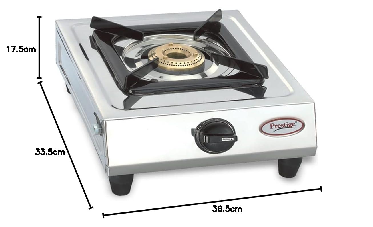 Prestige Gas Stove Prithvi – Single Burner, Silver, Manual Ignition, Stainless Steel