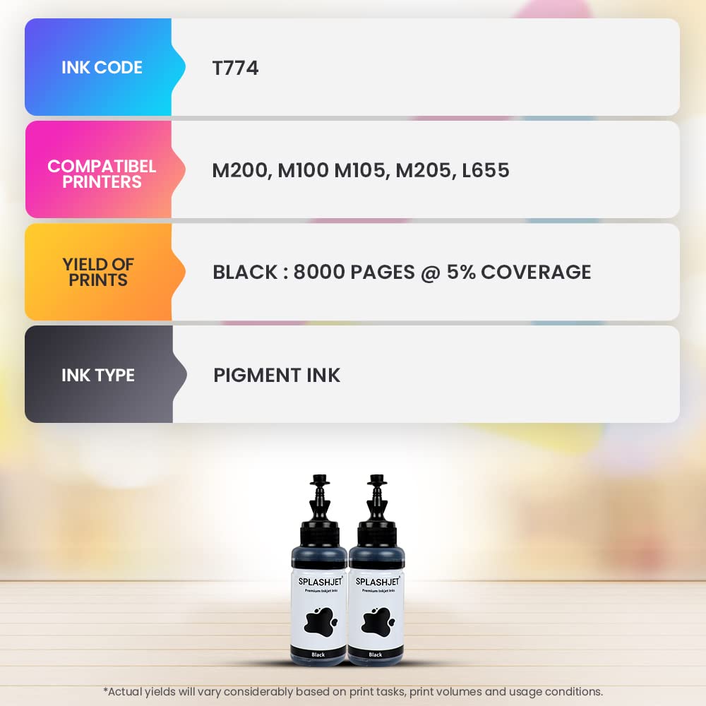Printer specific Inks specially developed. Splashjet ink Compatible for Epson M100 / M105 / M200 / M205 / L655