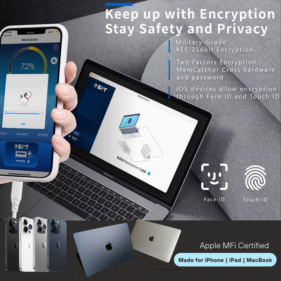 Backup for Your iOS Devices (Supports iOS 12 and above) : Automatically sync contacts, photos, and video files from your iPhone/iPad to an external memory card while charging