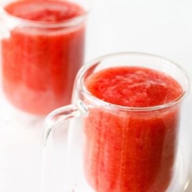 The consistency is flexible. You can make it smooth or keep it slightly slushy. You can strain the juice if you prefer a clear drink. I usually keep it unstrained for more texture.