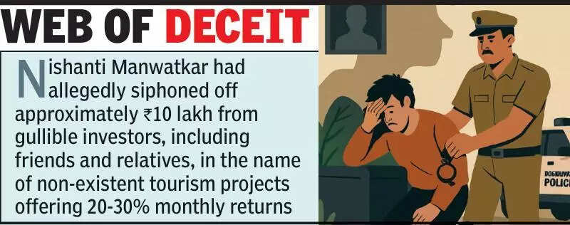 Nagpur: A 30-year-old swindler from Kapil Nagar staged his disappearance to evade creditors hounding him over unpaid dues. Nishanti Manwatkar, who allegedly lured dozens of investors with promises of high returns from a fictitious tourism venture, was tracked down and arrested by a team of Kapil Nagar police station under senior inspector Satish Ade on Friday.Manwatkar’s wife, Ankita, had filed a missing person report on April 19 at Kapil Nagar police station. The couple resided in a rented house next to Yadav Dharmakata in Kapil Nagar. Manwatkar left behind a suicide note that read: “I am leaving my family and going far away. If I do not contact anyone in 15 days, then it should be considered that I have died. I owe a lot of money to many people and I cannot afford to lose it. I get calls and messages from people every day. I am very worried about money. If I die, only I will be responsible for it, no one else.”Unbeknownst to his family, Manwatkar had allegedly siphoned off approximately Rs10 lakh from gullible investors, including friends and relatives, by peddling non-existent tourism projects offering 20-30% monthly returns. He squandered the funds on online gambling, losing nearly Rs25 lakh in high-stakes games. As repayment deadlines loomed and irate victims bombarded him for refund, he planned the vanishing act, said police. The breakthrough came after tip-off from an informant to the Missing Squad of the Kapil Nagar police station. Under senior inspector Ade, sub-inspector Shankar Nilpatrawar, head constable Akshay Sahare, and constable Nilesh Pawar swung into action. They conducted discreet surveillance and checked CCTV footages to locate Manwatkar who was hiding in plain sight in the city limits. He was taken into custody on Friday, and his fabricated story crumbled under interrogation. Preliminary investigation revealed Manwatkar’s deeper criminal entanglements. A cheating case was registered against him at Pachpaoli police station for the Rs 10 lakh fraud. Shockingly, he emerged as the prime accused in another case filed on August 15 this year at Manmad police station in Nashik Rural. Details about of these offences have not been revealed, but sources hint at similar investment scams targeting vulnerable locals. Manwatkar has been remanded to custody of Pachpaoli police station for further questioning. “This is a classic case of desperation masked as tragedy,” said Ade.