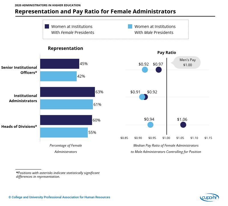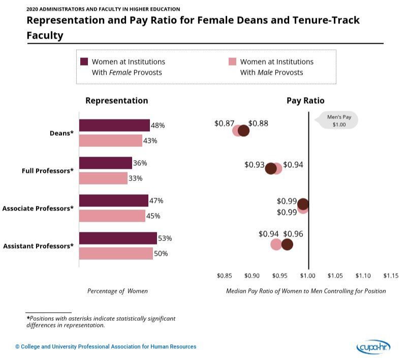 New research from CUPA-HR has identified several findings that indicate differences in pay and representation when institutions are led by women compared to when institutions are led by men.